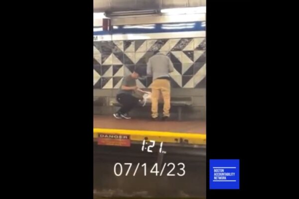This reader submitted video was captured on July 14, 2023, at Boston’s Aquarium Station and shows two individuals engaging in an illegal drug trade.